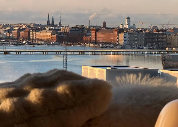 A Scandinavian Minimalist Seaside Flat On Top Metro With Downtown View rendelkezik egy felszerelt konyhasarokkal, amely tökéletes saját ételek elkészítéséhez. A Soernaeistenlaituri buszpályaudvar innen gyalog 5 percre van. Az apartman jakuzzit kínál a vendégek maximális kikapcsolódásához. Az ingatlan vendégei megmártózhatnak a tetőtéri medencében.